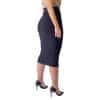 La falda es de un color negro sólido y uniforme en toda su extensión, sin detalles, estampados o aplicaciones de otros colores, lo que la convierte en una pieza extremadamente versátil.