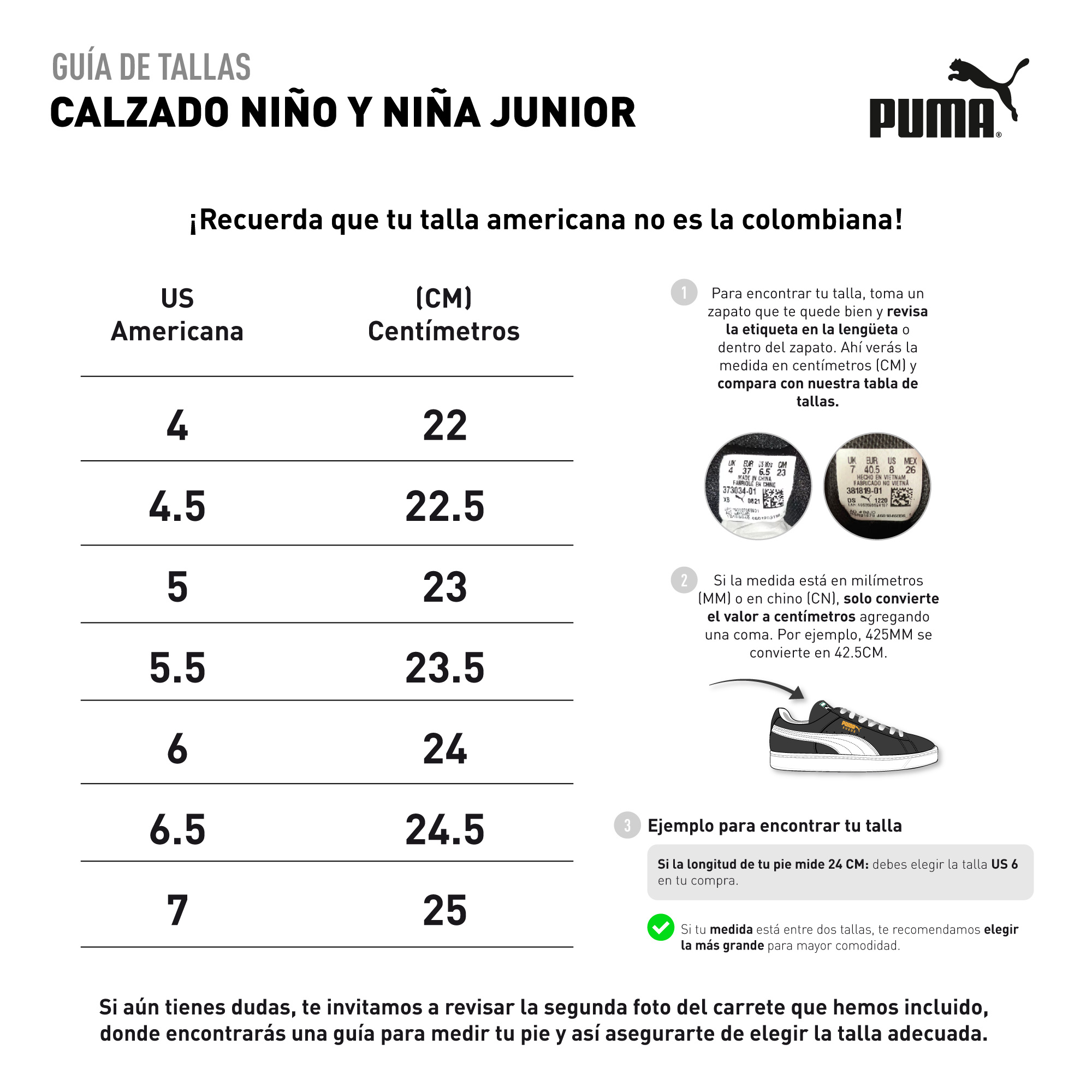 Los Tenis Deportivos Puma Original Palermo Lth Verde Para Niños combinan el estilo retro clásico con la comodidad moderna que caracteriza a Puma. Inspirados en los icónicos diseños futboleros de los años 80, estos tenis traen de vuelta una silueta legendaria, adaptada a las necesidades y al ritmo activo de los más pequeños.Su diseño en color verde vibrante y su confección en materiales de alta calidad garantizan resistencia, confort y durabilidad. La suela de goma ofrece excelente tracción, mientras que el forro acolchado y la plantilla suave proporcionan una pisada estable y cómoda durante todo el día.En RunwayShop, somos distribuidores autorizados de Puma, por lo tanto, te aseguramos que este es un producto 100% original, con garantía, respaldo y calidad certificada.Beneficios y ventajas del producto- Diseño inspirado en los clásicos del fútbol urbano de los años 80.- Materiales de alta durabilidad ideales para el uso diario de los niños.- Suela de goma antideslizante que ofrece estabilidad y seguridad.- Plantilla acolchada que brinda comodidad durante todo el día.- Forro interior transpirable que mantiene los pies frescos.- Cierre con cordones para un ajuste seguro y firme.- Colores modernos que aportan un toque deportivo y juvenil.- Perfectos para uso escolar, casual o recreativo.- Producto 100% original, garantizado por RunwayShop.- En RunwayShop, somos distribuidores autorizados de Puma, brindando autenticidad y confianza en cada compra.Ficha técnica- Producto: Tenis Deportivos Puma Original Palermo Lth Verde Para Niños- Referencia: 39727118- Marca: Puma- Color: Verde- Género: Niños- Material exterior: Cuero sintético de alta calidad- Material interior: Textil transpirable- Plantilla: Acolchada y ergonómica para mayor confort- Suela: Caucho resistente antideslizante- Cierre: Cordones- Estilo: Deportivo / Casual / Urbano- Colección: Palermo Lth- Tallas disponibles: Variedad de tallas disponibles- Usos recomendados: Uso diario, escolar o recreativoPreguntas frecuentes1. ¿Los Tenis Puma Palermo Lth son originales?Sí, en RunwayShop garantizamos que todos nuestros productos son 100% originales y cuentan con empaque oficial de la marca.2. ¿Son cómodos para uso escolar?Sí, su plantilla acolchada y su diseño ergonómico los hacen ideales para largas jornadas escolares.3. ¿Son resistentes al desgaste?Están fabricados con materiales duraderos y su suela de caucho soporta el uso continuo.4. ¿Cómo puedo saber la talla correcta para mi hijo?En RunwayShop recomendamos medir el pie del niño y consultar nuestra guía de tallas para un ajuste perfecto.5. ¿Se pueden lavar en lavadora?No se recomienda. Es mejor limpiarlos con un paño húmedo y dejarlos secar a la sombra para preservar su forma.6. ¿Qué hago si la caja llega averiada?Puede ocurrir por el transporte, pero el producto es 100% original y llega en perfecto estado.7. ¿Tienen buena tracción para actividades al aire libre?Sí, su suela de caucho antideslizante ofrece un excelente agarre en distintas superficies.8. ¿Cuál es la política de garantía?En RunwayShop ofrecemos una garantía de 30 días por defectos de fabricación.9. ¿Estos tenis son unisex?Están diseñados especialmente para niños, pero su estilo puede adaptarse a distintos gustos.10. ¿Dónde puedo comprarlos con total seguridad?Puedes adquirirlos exclusivamente en RunwayShop, distribuidor autorizado de Puma, con respaldo y autenticidad garantizada.